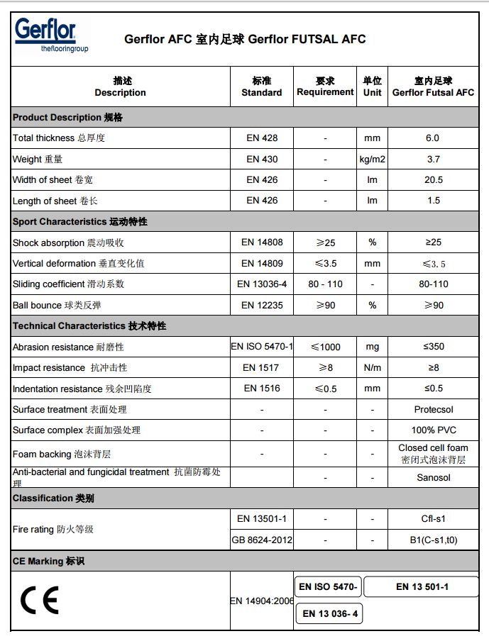 潔福AFC室內(nèi)足球地板,全新的潔福室內(nèi)足球地板,共有2個顏色,為室內(nèi)足球的標(biāo)準(zhǔn)紅藍(lán)二色。厚度 6.0mm。表面為PROTECSOL特殊維護(hù)處理,耐臟抗污,易于養(yǎng)護(hù)。產(chǎn)品中加入了 Sanosol技術(shù),持久抑菌防霉。